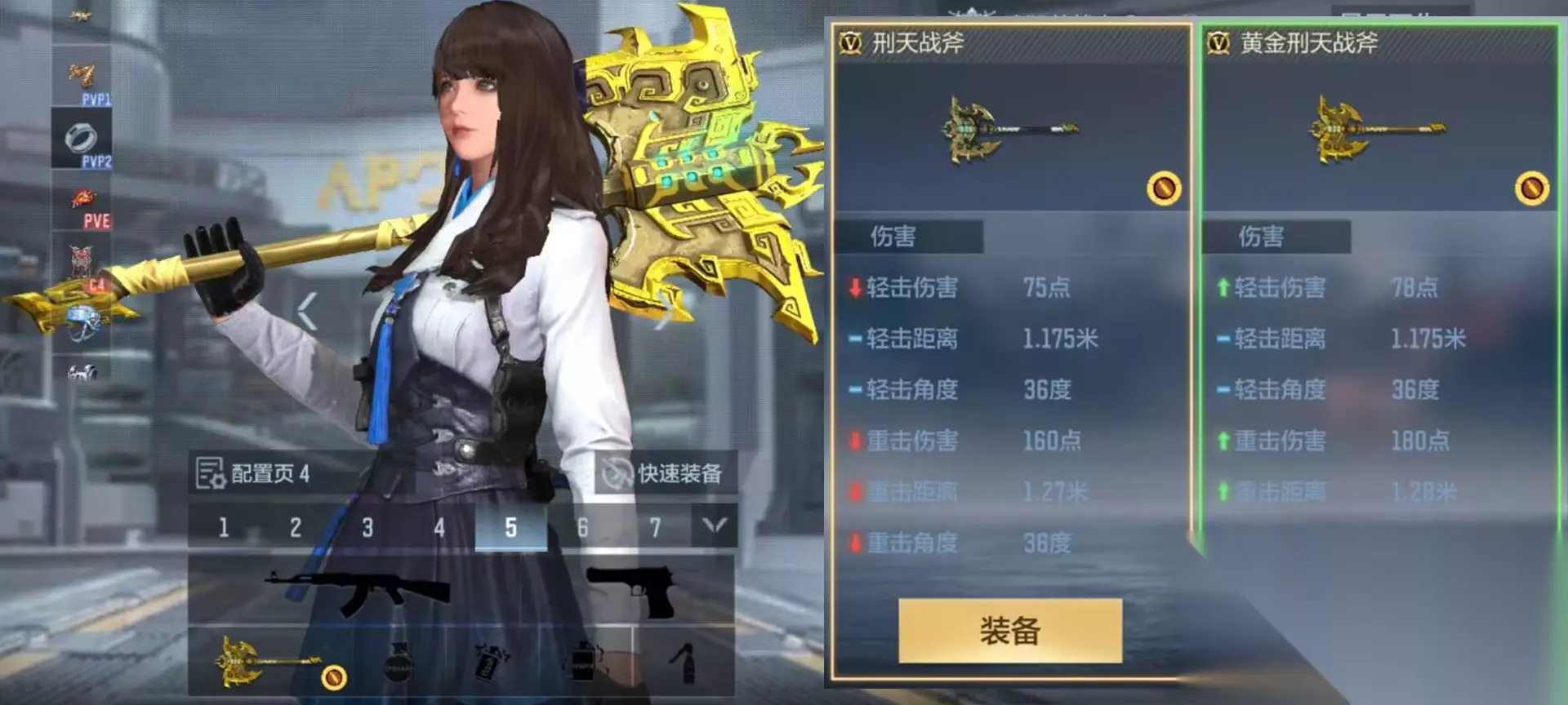 黄金刑天战斧相较于刑天战斧在伤害、攻击、距离方面都进行了一定程度的加强,装备后可增加手持移速以及武器切换速度。在攻击方式方面,轻击则是向前挥砍而出并伴随着金色的光芒,而重击则是用力向前劈砍并伴随金色残影消散于天地之中~