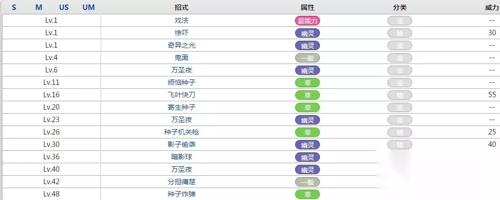 属性 幽灵草 特性 捡拾 / 察觉 隐藏特性 不眠 分类 南瓜宝可梦 身高 0.4m / 1'04" 体重 5.0kg / 11.0lbs. HP 49 攻击 66 防御 70 特攻 44 特防 55 速度 51 总和 335 生蛋分组 不定形 孵化步数 20圈(5120步) 性别比率 ♂1 : ♀1 捕获度 120 初始亲密度 70 满级经验 1,000,000 基础点数 防御+1