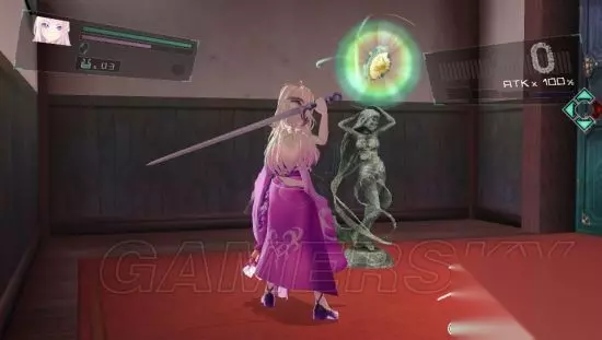 DRIVE5-B 收集模式: 打完初次的一波敌人之后,传输点会出现一把钥匙,取得之后,图中右侧的“停”就会消失,进入之后,就会发现第一个石像碎片。