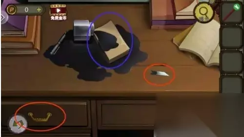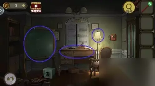 二、获取方法 在获得完整宝石拿到钥匙打开中间书房后,根据台灯和黑板的线索,打开书桌柜子,拿到清洁剂。书桌上拿到刀片,刀片和铅笔组合,涂书得到钟表图。柜子解谜思路:黑板上的图,以斜线对折,一个英文对应一个数字,把台灯上的英文换成数字。柜子密码:14706