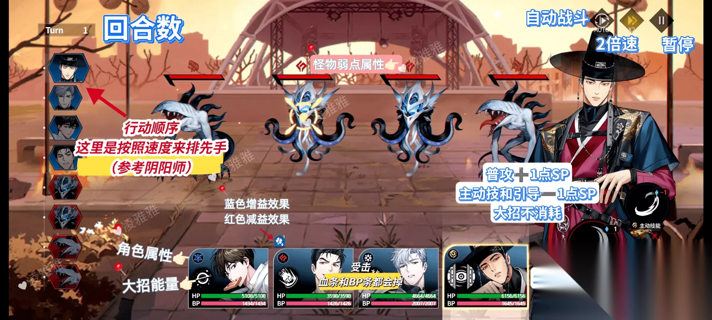 人物介绍 宋时赫伤害高,但是脆(自带拉条)。 尹蓝星好用(主动技防御,大招十段伤害) 雷登(给敌方上流血负面)需要搭配金义才(专武有流血加成)