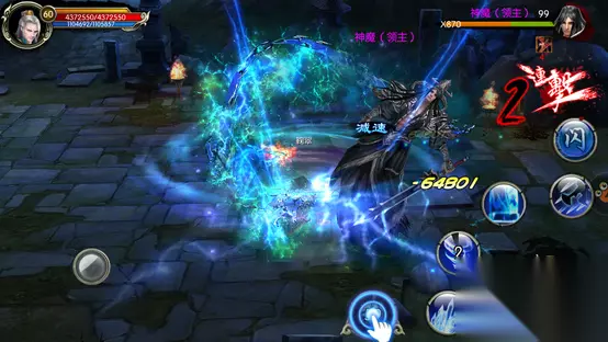 游戏操作:7.3/10分 采用了横版动作类型的《神墓OL》,在操作方面的表现并称不上十分出色,传统摇杆+技能按键的方式中规中矩。在普通攻击按钮上设计了「手势」操作,采用简单的向对应方向滑动以触发固定技能,让玩家在限定的4个技能之外能再多出几个可以攻击的方式。 左手控制方向,右手负责打怪,这个游戏发出的必杀技不是用来搓而是点击一下就可以了,所以玩家们不必费劲到手指都磨出泡来搓出一个华丽的招式,这点可以说挺人性化的。