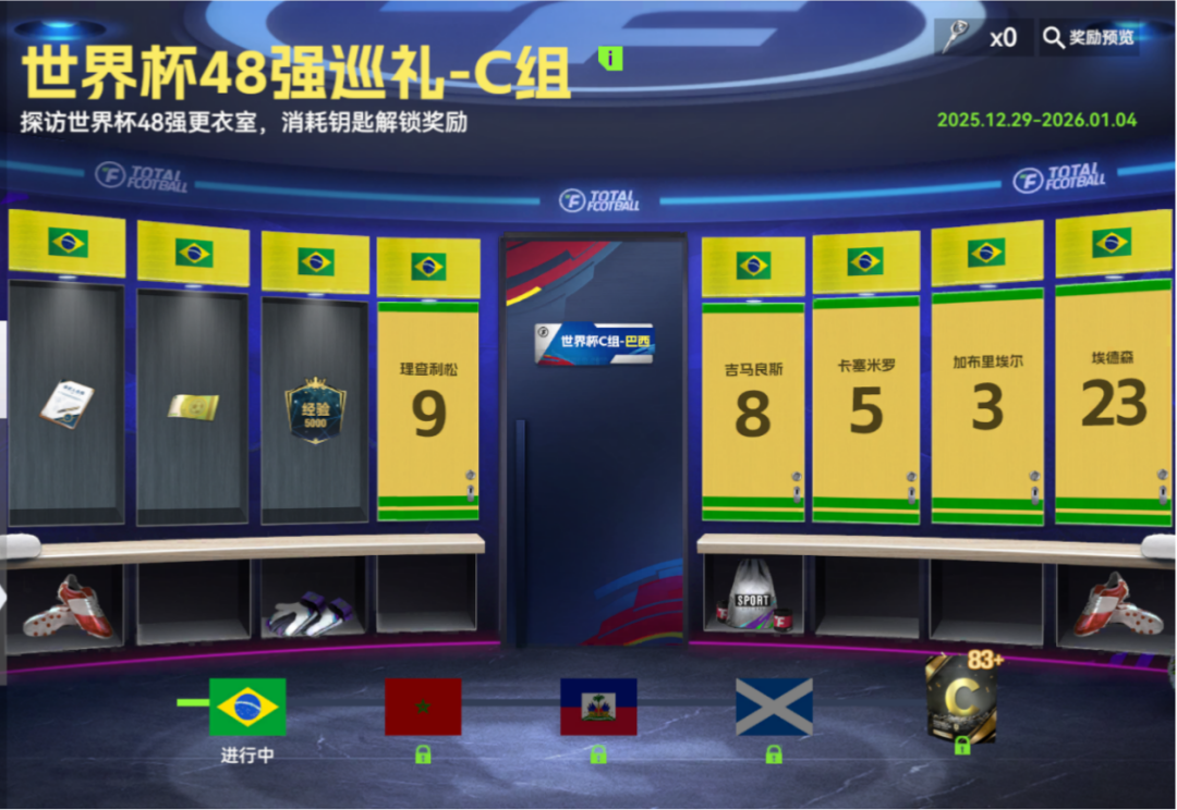 探访世界杯48强更衣室,消耗钥匙解锁奖励。推开更衣室大门,探寻传奇真正开始的地方。随着一个个奖励被解锁,那些属于世界杯赛场的激情、信念与胜利渴望,也离我们越来越近了!