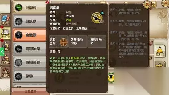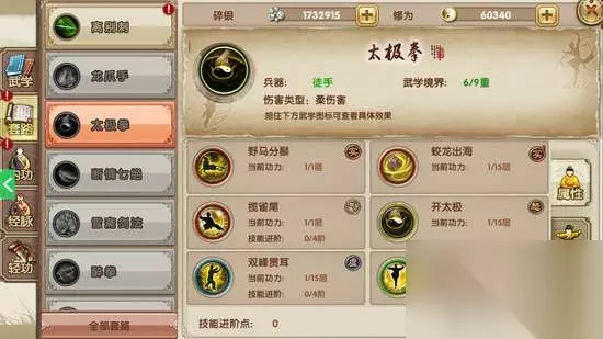 野马分鬃 【总结】 总而言之,太极拳作为古朴级的江湖武学无疑是土豪专用了。土豪朋友可以直接收残卷入手一套哦。