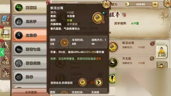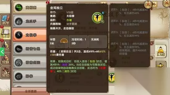 太极拳怎么样?太极拳值得入手么?今天小冉就为玩家深度解太极拳,希望大家喜欢。 太极拳作为江湖武学的徒手套路,简直是逆天。首先我们先分析一下太极拳的招式吧。 兵器:徒手。 初始武学境界:6/9重。 伤害类型:柔伤害。 太极拳配合心法:神功盖世、厚积爆发、天魔解体。