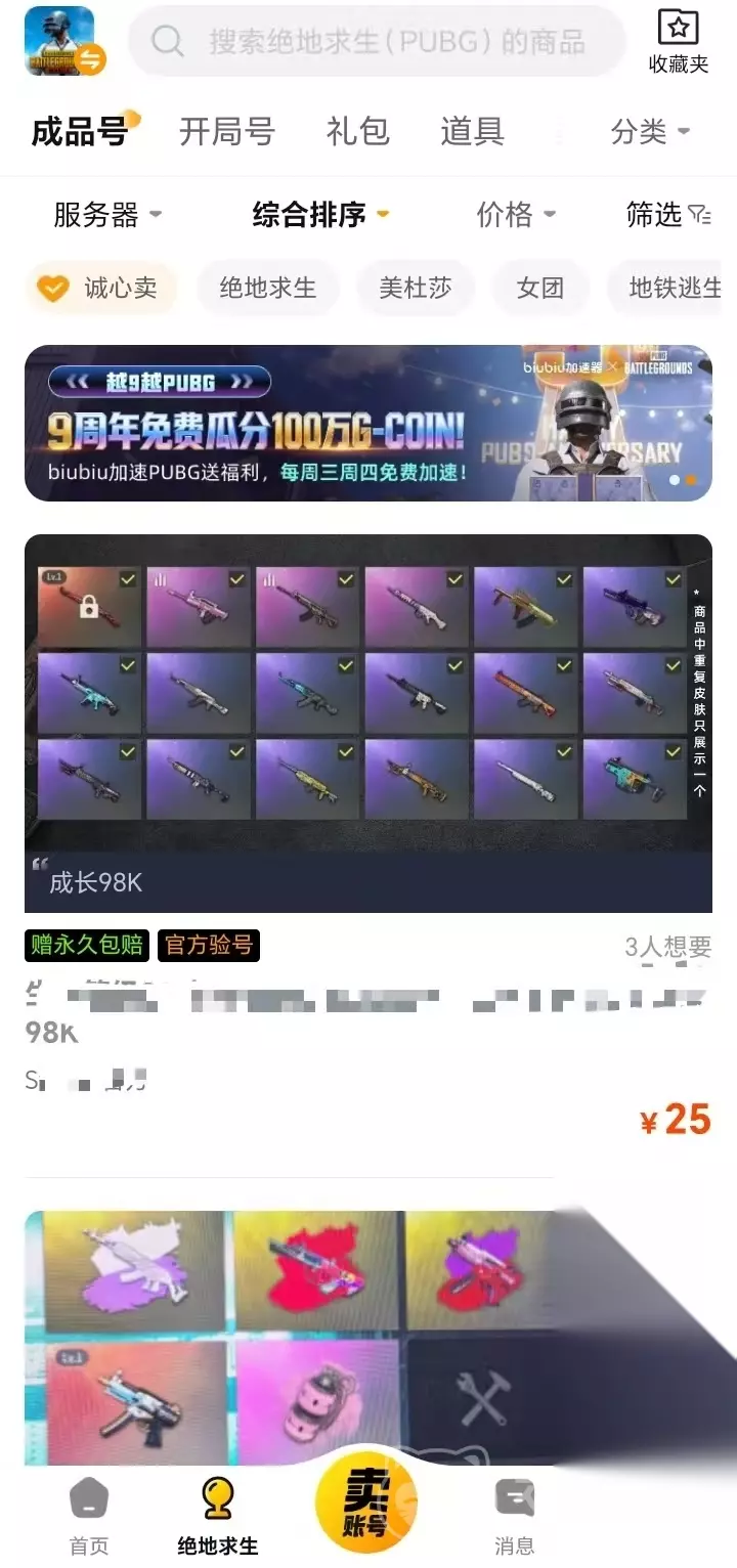 交易猫为绝地求生玩家朋友开设有商品专区。买家只需要在首页选择绝地求生,就可进入到相关商品的展示页面。这里的成品号、礼包、道具、开局号等资源非常丰富,买家可对比每个商品的价格、实用性来进行购买。同时,这里还会为大家出具商品的安全报告,大家可放心购买。