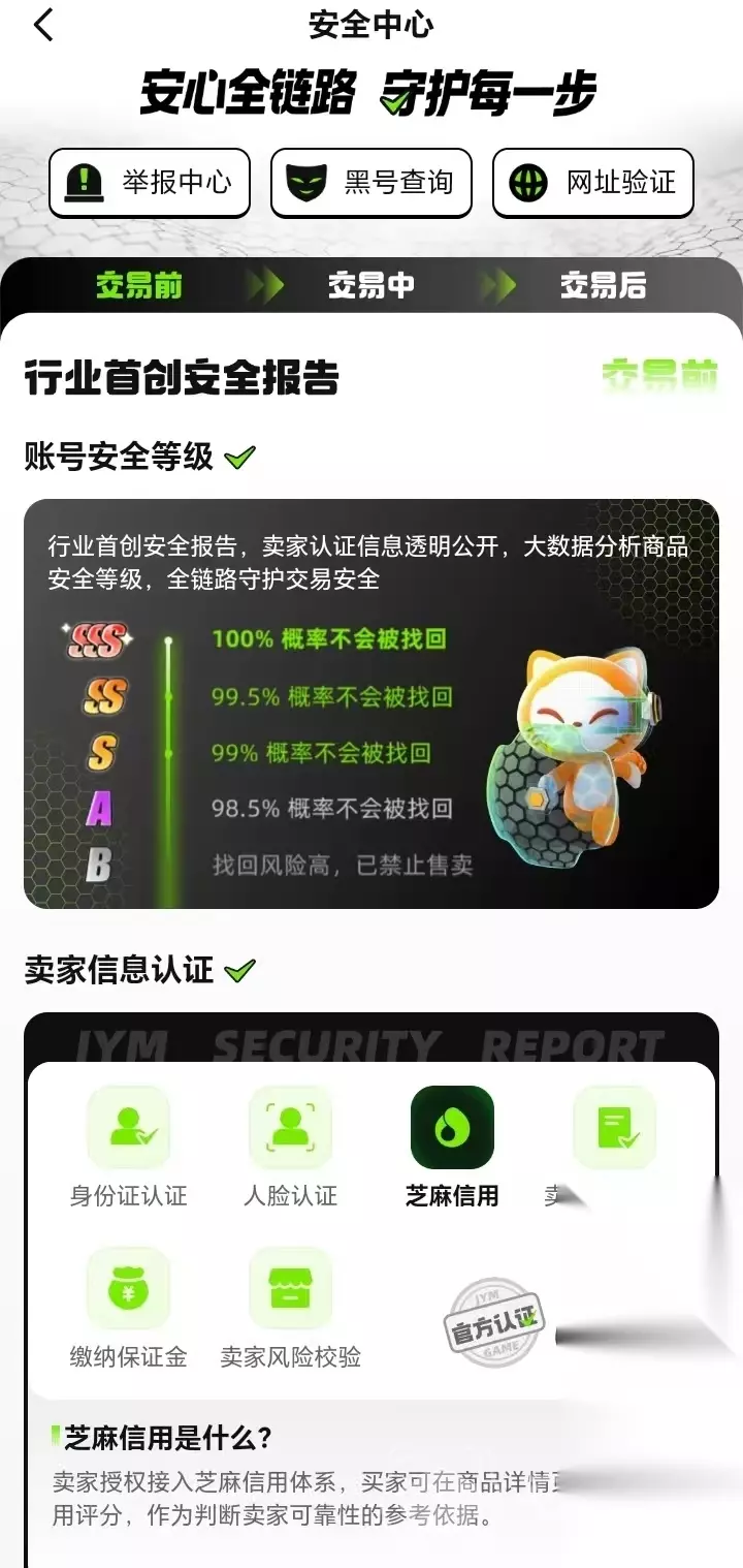 【交易猫】最新版下载 点击下载 在交易猫进行游戏账号的交易安全有保障,它是阿里巴巴灵犀互娱旗下运营,是业内唯一一个全场送永久包赔的平台。安卓用户可直接点击以上链接下载交易猫,IOS用户前往交易猫官方网站搜索完成。