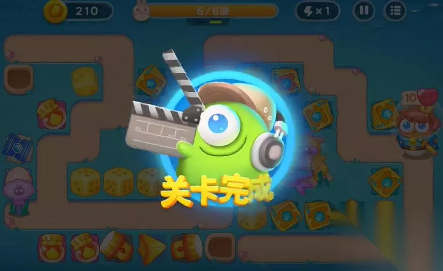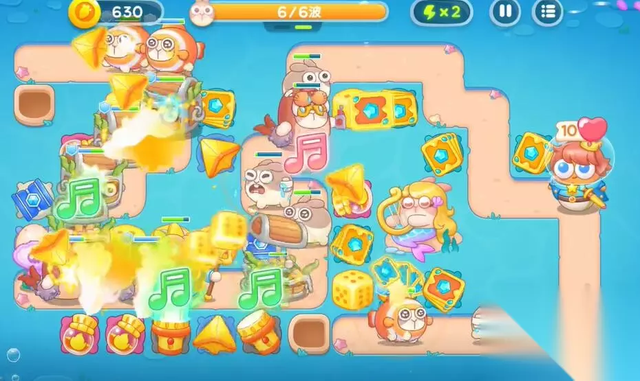 7、根据输出的情况去建造更多的防御塔,同时利用音符的buff来守住最后一波挑战,进入第二轮。