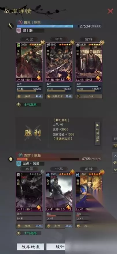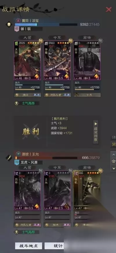 《率土之滨》雨化田队玩法分享 先上战报