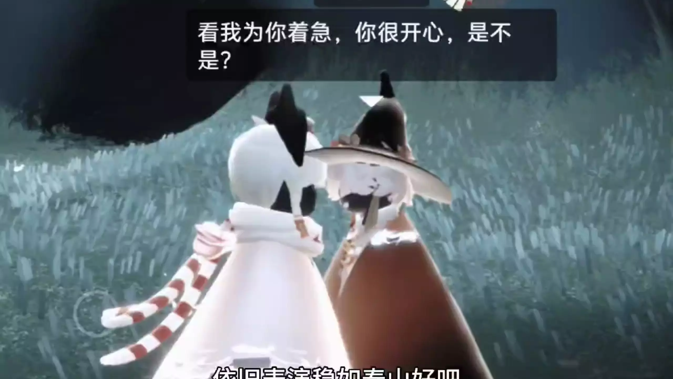 这是光遇花憩节的趣味互动内容,玩家化身潜伏者,和同伴进行充满戏精感的对话互动,还调侃角色装扮和npc老板小号一模一样,尽显光遇玩家的趣味整活日常。