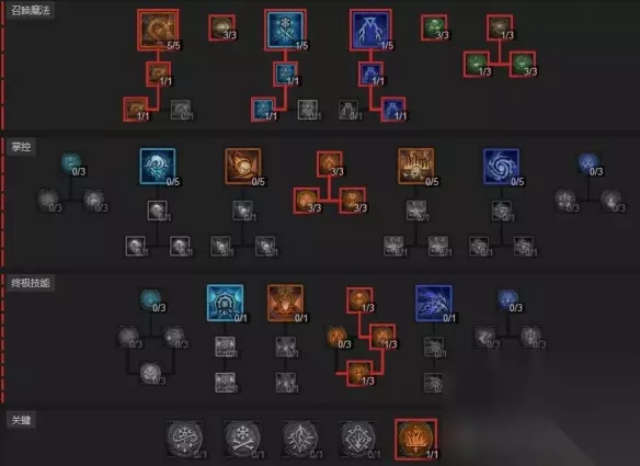 暗黑破坏神4火法纯召燃烧流玩法分享 核心: 1、火蛇等级12(头 4火蛇,项链 3召唤技能 3吞噬)火蛇一定要点燃烧天赋 2、天赋-燃烧本能(燃烧伤害,天赋点出来面板500% ) 3、天赋-召唤技能伤害(光天赋点出来280%左右) 4、要有一定幸运一击 火蛇触发定身、电矛触发眩晕,冰召触发易伤(减CD很强)。附魔冰环冰冻 易伤。高层冰召附魔可以换火盾 起手电矛、冰召、火蛇X2,然后就是发呆。 技能附魔: