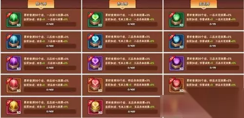 在暴走大侠手游中丹药效果有哪些呢?在暴走大侠手游中每个丹药的效果属性都是不同的哦!那么不清楚的话下面就来看一下吧! 暴走大侠丹药效果大全 暴走大侠丹药: 丹药系统内有食用和炼制两个功能。食用丹药可以增强人物属性,炼制则是获取丹药的途径。 丹药分为三种,分别为剑心丹,增加攻击;赤血丹,增加气血上限;天芝丹,增加伤害减免。 每种丹药又有一至五品之分,品阶越高,食用后的加成效果则越佳。人物等级越高,可食用的丹药数量上限越高。累计食用同一类型同一品阶丹药到一定数量,可获得额外的百分比属性加成(只对同种丹药增加的属性生效)。