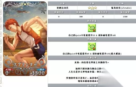 短跑选手 Q卡加成一般,弱体耐性也是一般吗,但是给一些没有绿魔放的master当礼装也好,总体来讲绿砖+1 看了上边这篇《Fate Grand Order》空之境界礼装实用性选择分析,各位玩家是否都了解相关信息了呢!找精彩好玩手机游戏请浏览233乐园。 如转载涉及版权等问题,请作者与我司联系,我司将在第一时间删除或支付稿酬。