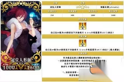 冠位人形师 乍看这个礼装,强无敌啊,满破20%的A卡性能+60%的NP起手,但是细看,3回合?丢人玩意,你退群吧.jpg。 这张礼装较为一般,适用于一些A卡较多但是输出性能较差或者NP获取率较差的从者(看什么看,大公,说的就是你。)总体来讲,这礼装较为一般。