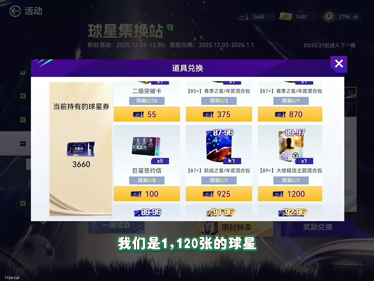 玩家在足球游戏《最佳球会》的球星集换站活动中,用攒的2500张球星券兑换了92大使混合包,却次次保底,无奈询问其他玩家都开出了什么。