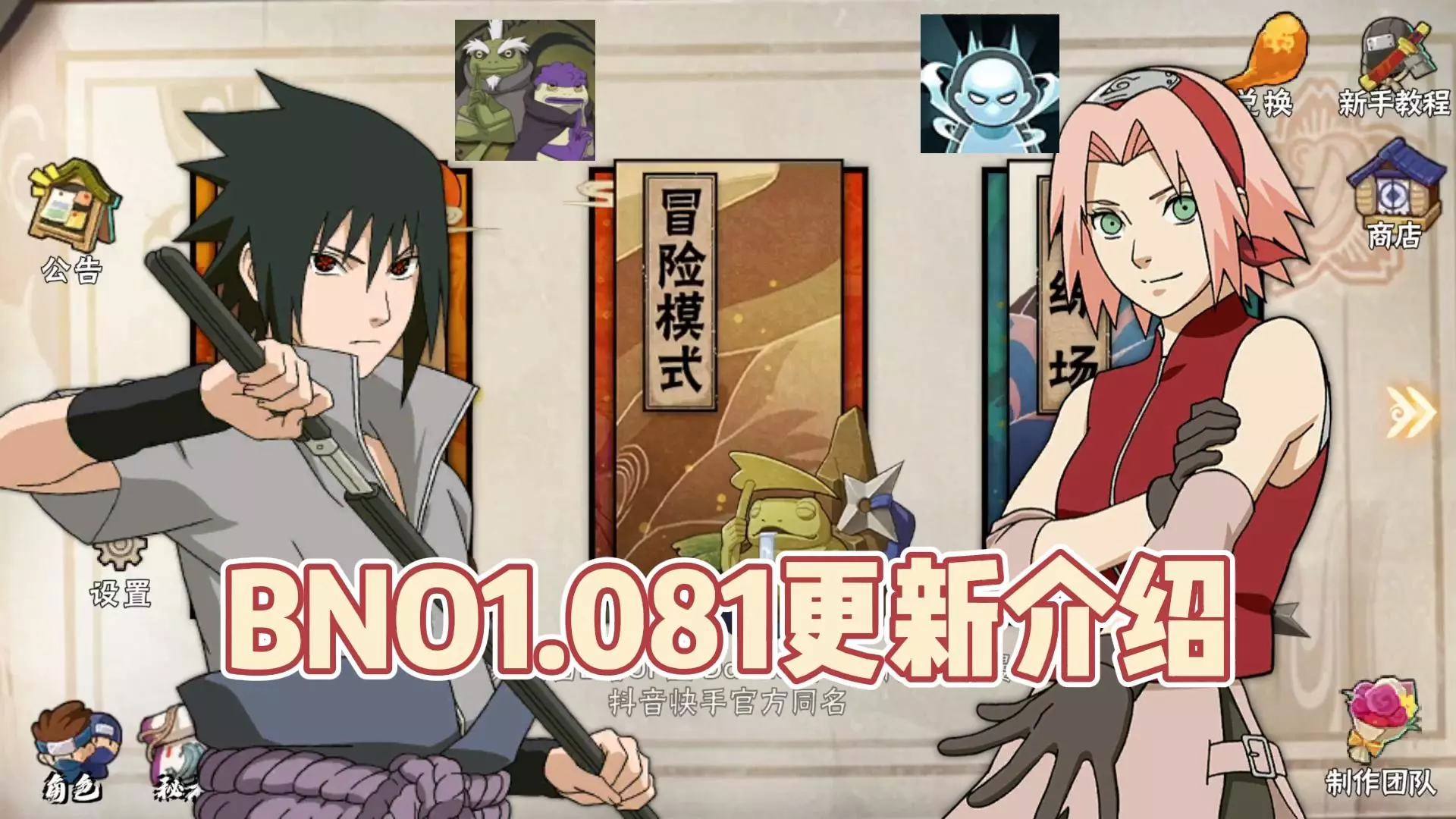 这是一篇关于像素火影BNO跨界对决新版本的内容,作者在测试秽土鼬的伊邪那美技能时,意外发现了一个bug卡法,还展示了在蛤蟆即将鼓嘴时按下大招的游戏操作画面。