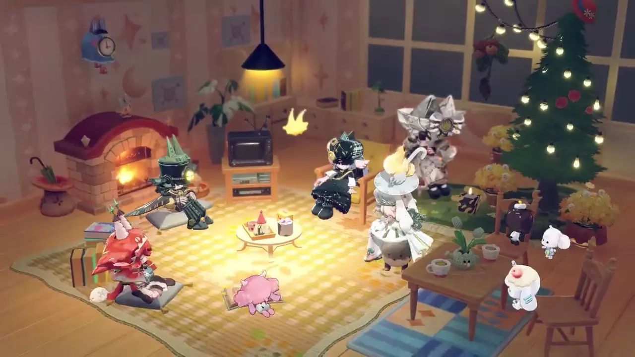 PV中同样出现的玩家角色一起探索、聚会的场景。「不忘乡」并非一座孤岛。与朋友的陪伴、协作可以产生奇妙化学反应,这些将是游戏体验的核心驱动力之一:与他人的联结,本身就是这个世界上最温暖的“资源”。