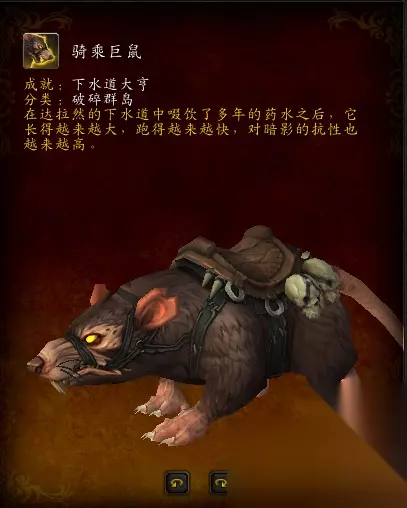 巨鼠-达拉然下水道PVP,通过PVP和开下水道的宝箱,奖励的盲目之眼2万个,就可获得巨丑的老鼠坐骑。(号多的玩家,可多开进行送人头获得)
