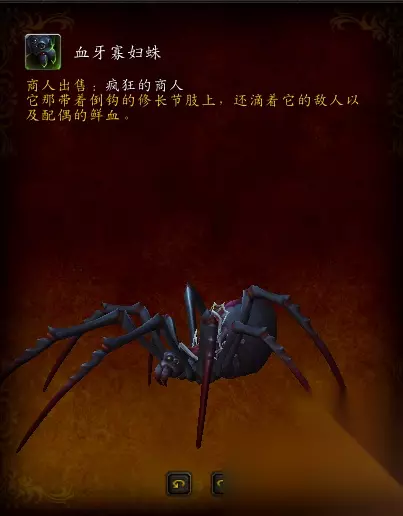 血牙寡妇蛛-破碎群岛达拉然的玩具店,随机刷新一个NPC:疯狂的商人,由于时间完全随机,所以需要有耐心等待,售价200万金。