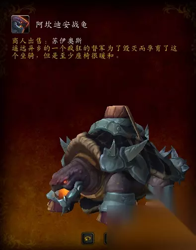 阿坎迪安战龟-达拉然银行左边角落绷带人售卖的坐骑,需要150个【古怪硬币】,而古怪硬币玩家可通过稀有怪、BOSS、宝箱等获得。
