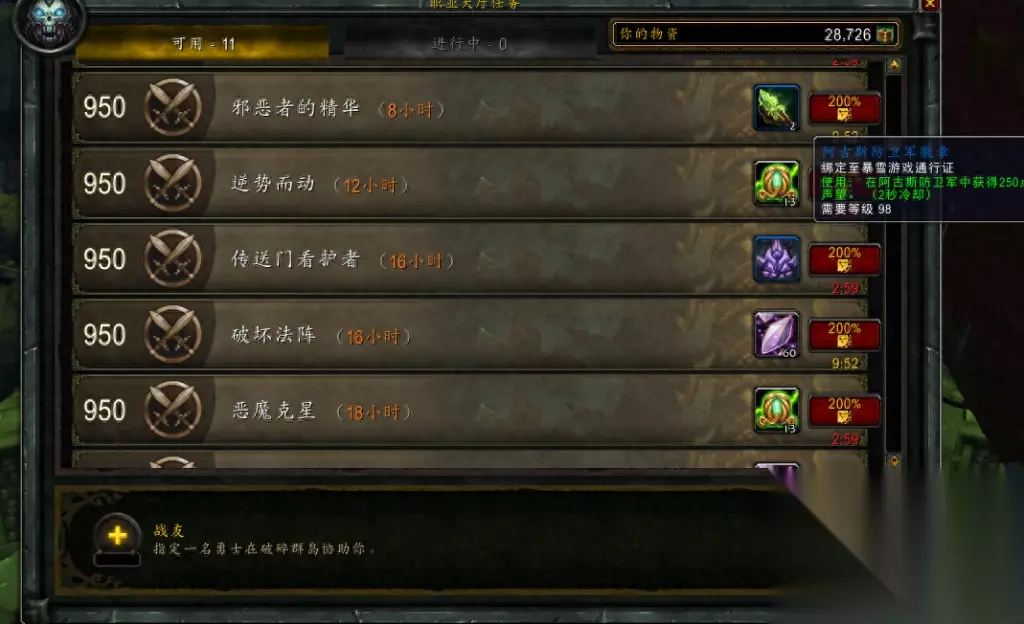 玩家也可做职业大厅的收菜面板随从任务,玩家可收集声望徽章,等暗月节的木马BUFF再使用。