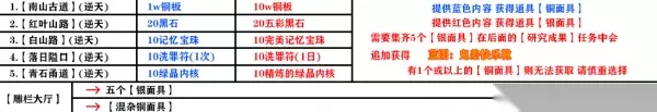 攻略详解 在这个任务中玩家需要收集五个银面具,很多玩家收集了4个之后就找不到最后一个了。 获取方法: 1、南山道-南山古道 【湮灭难度】 要求:十万铜币 2、红叶寺-红叶山路【湮灭难度】 要求:二十颗五彩斑斓的黑石 3、白山路-白山路【湮灭难度】 要求:十颗完美记忆宝珠 4、落日隘口【湮灭难度】 要求:十枚洗罪符(一日) 5、谢园-青石甬道【湮灭难度】 要求:十个精炼绿精内核 注意: 必须是湮灭难度副本才能够获得。 后续任务: 然后找到他的徒弟,叫做木鸣,然后就可以得到传送图纸,分别为鬼差号令戒、鬼差号令靴,可以召唤护卫。