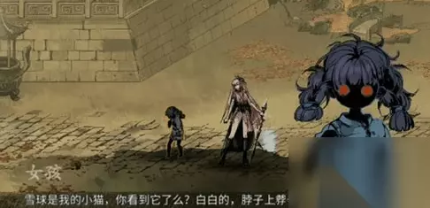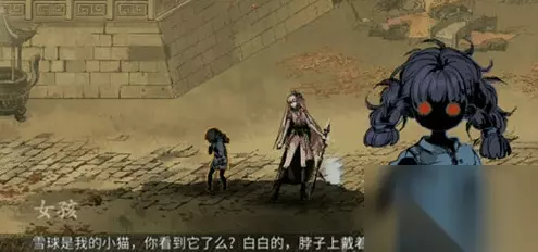 支线:人偶之魂 在地下石窟石窟通道找到女孩要娃娃,在落雪路村妇面前拆娃后随剧情,找女孩选择被抛弃