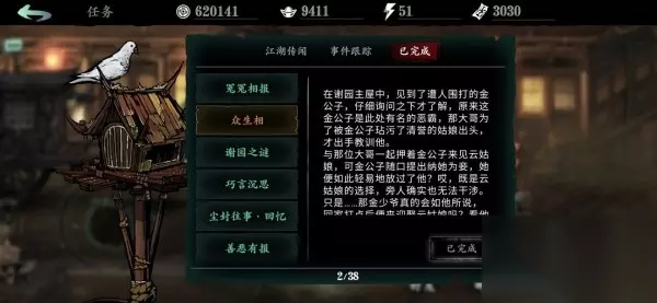 支线:众生相 在谢园主屋找到金公子选择出手阻止,相信大汉后去见云姑娘,选择跟着公子后教训一顿。众生相(完)1800