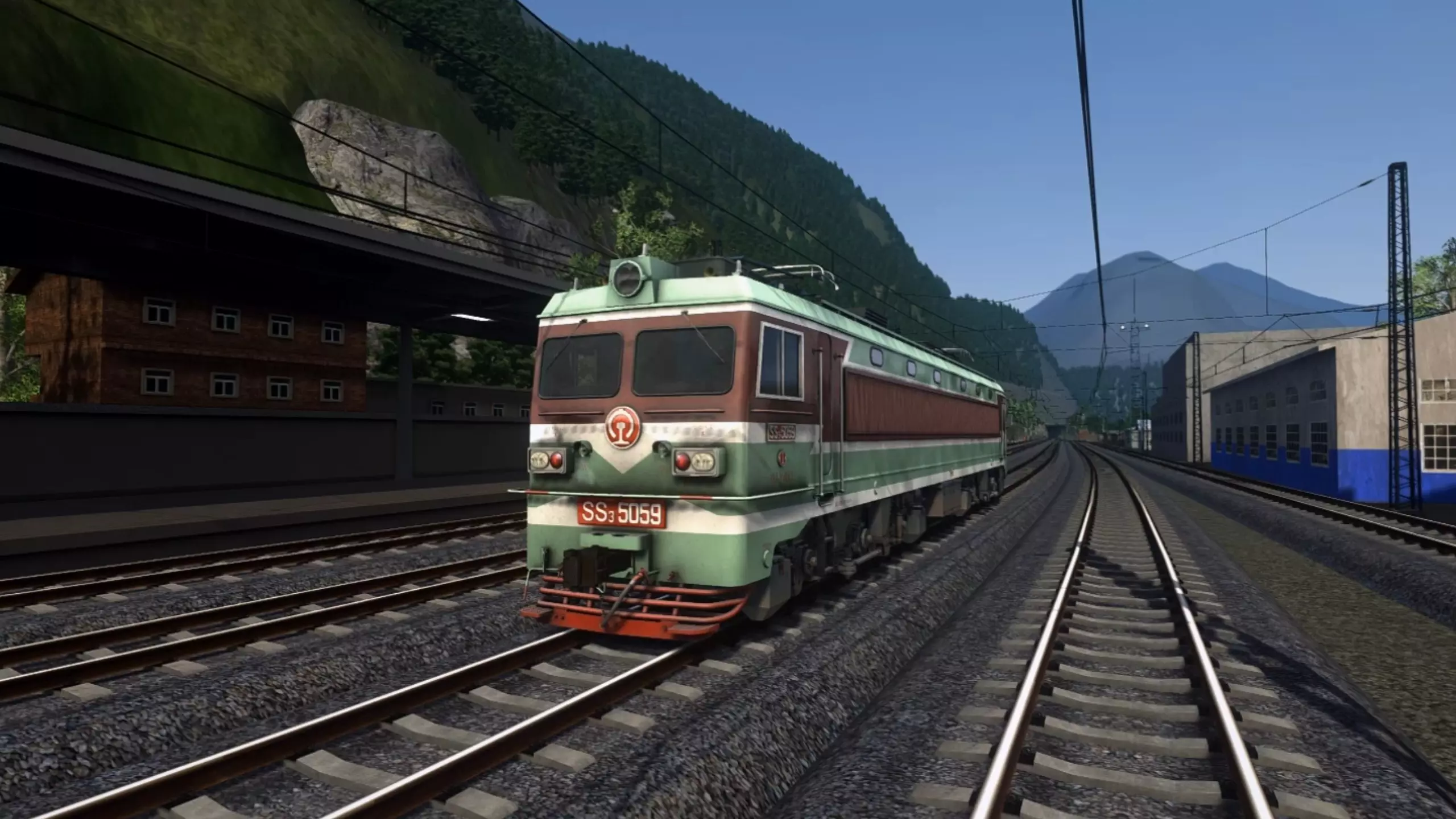 这是模拟经营游戏《模拟火车世界5》的游戏内容,展示了游戏里高铁与普速列车交汇的场景,呈现了不同时代列车同框的碰撞效果,带来独特的火车模拟体验。