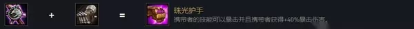 珠光护手 携带者的技能可以暴击并且携带者获得+40%暴击伤害。