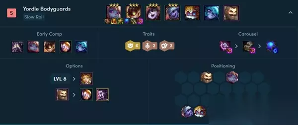 【云顶之弈s6英雄大全】 云顶之弈s6吉格斯阵容出装 阵容:璐璐+波比+黑默丁格+布隆+吉格斯+崔丝塔娜+薇古丝 解析: 1、一个有很多3星英雄的阵容,只要玩家的装备不是太差这个阵容都非常的吃香。 2、另外还可以利用这个英雄的羁绊进行一些战略的安排,站位和出装见下。