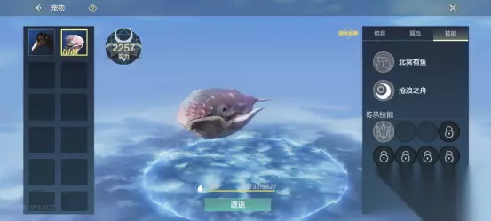 4、然后提升寒冥鲲等级,达到30级后领取第8日的进化丹奖励,再去找岳云鹏NPC,变成腾影鲲。 5、腾影鲲达到满级45级后,在14日签到中领取最后一个进化丹,去找岳云鹏NPC,就可以进化为击浪鲲了。 此时击浪鲲可以进行骑乘,并且海陆空都是可以骑乘的,因此是一个非常不错的坐骑,非常值得玩家用14天的时间来进化得来哦。