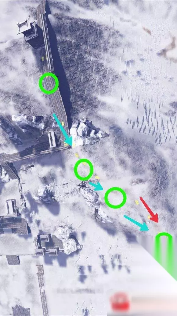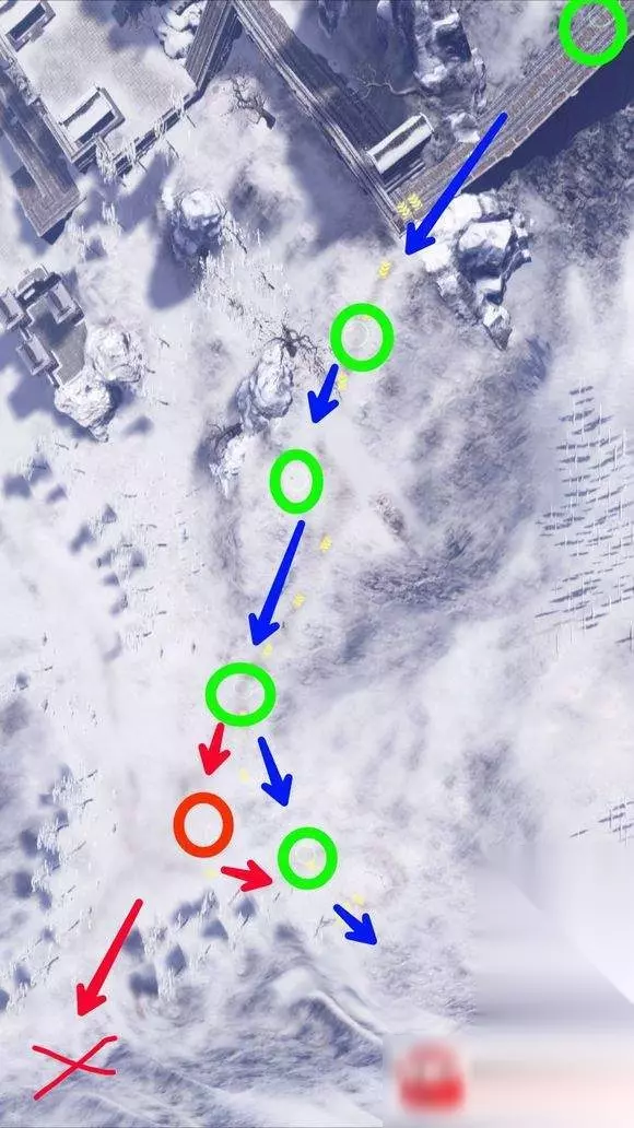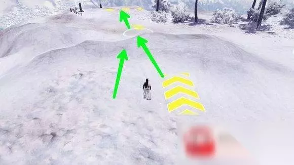 最后,楼主分享一下最关键点,也是经验之谈 雪人所在的红线,起跳,大概是最优起跳位子,楼主试了好多次,无线在400左右徘徊。而如果选择游戏标注的红圈内起跳,最远也就370左右。(不过红圈起跳,可以完成最后的跳圈圈任务 红圈内越正中跳,越容易完成跳圈圈的成就)