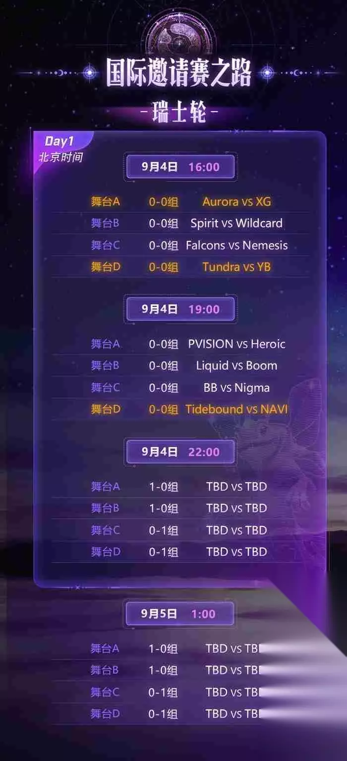 DOTA22025国际邀请赛,DOTA2TI14首日对阵公布,Ti14时间,DOTA22025,下面小编来给大家介绍一下,一起来了解一下吧! DOTA2TI14国际邀请赛首日对阵及赛程全解析 2025年DOTA2国际邀请赛(TI14)即将于9月4日开启,这场被誉为电竞"春晚"的年度盛事迎来关键赛程公布。以下是关于TI14首日赛程、瑞士轮赛制及参赛队伍的深度解析。 **赛事时间与首日对阵安排** TI14首日比赛将于9月4日正式启动,首战时间为当日16:00。中国战队XtremeGaming(XG)将作为首批登场的战队之一,与TeamTidebound等强队展开激烈角逐。