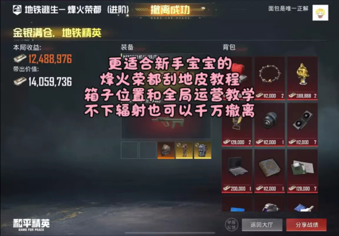 这是《和平精英》地铁逃生模式的玩法分享,介绍了一种0成本打法,玩家可空手开局,通过拾取物资、搜刮区域来获取收益,最终能猛赚300万,即便装备不佳也能尝试该玩法。