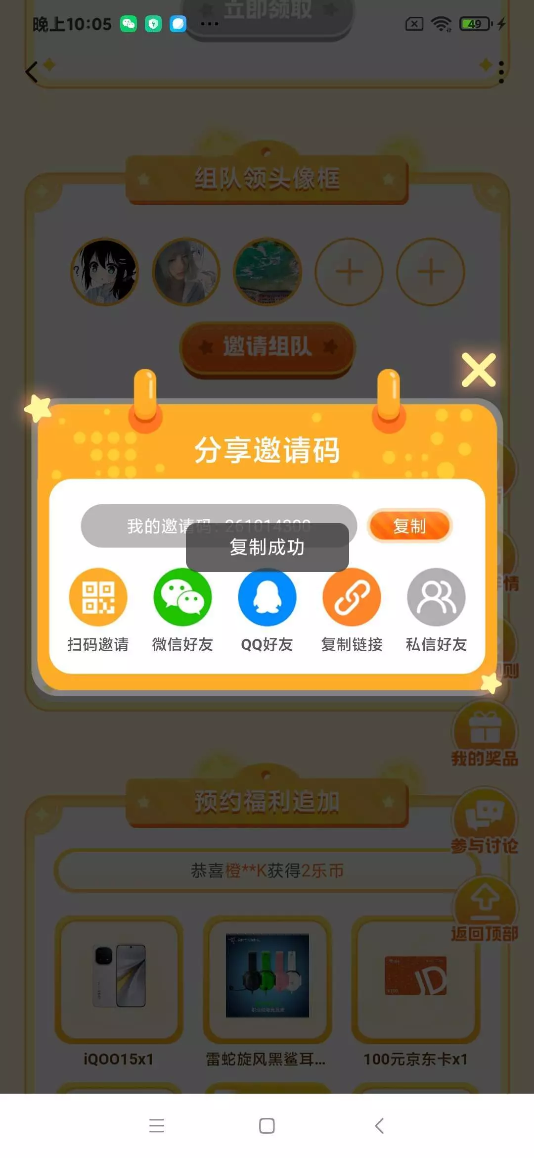 请求组队。