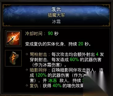 用冰复仇换下黑暗之心(50%减伤),可以做到较为效率的稳定冻怪,速刷时白怪清理更干净。 2、华戒+萃取导能/霜燃
