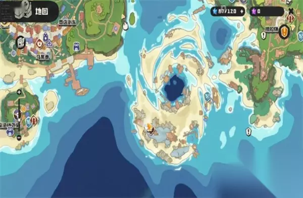 3、传送副本水域 在地图上可看到带有漩涡的小湖旁停着一艘小船。 完成“颜色方块”任务后解锁三个传送门。 进入后副本内部将大量刷新罗隐,含多种形态个体,效率远超其他地区。 建议携带高捕获率道具与体力恢复物,进行集中捕捉。