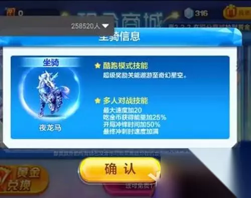 白龙马的技能是可以进入专属的超级奖励关卡,在奖励关卡中坐骑变大且得分更高,同时还有踩怪得分的加成! 而夜龙马同样是在奖励关卡中有特殊加成,可以直接遨游在奇幻星空,从技能图片上来看,得分估计还是非常绚丽的哦。 白龙马是黄金奖池第三届的奖励,这款坐骑一出,立刻就称霸了多人对战,和齐天大圣等搭配起来,在经典模式中实力也非常强悍。直到如今,白龙马还是目前多人对战中最强势的坐骑之一。作为另一面的白龙马,我们的夜龙马进入黄金奖池的概率其实也很高,再不济也是人民币上架哟~所以目前关于夜龙马这款坐骑能否碾压白龙马,就要看夜龙马会怎么出场了。如果同样出身黄金奖池,那么实力肯定就可以碾压白龙马辣。 夜龙马技能属性分析: ☆酷跑模式技能: 超级奖励关能遨游至奇幻星空 ☆多人对战技能: 最大速度加20% 吃金币获得能量加25% 开局冲锋时间加50% 最终冲刺速度加满 以上便是天天酷跑白龙马和夜龙马对比解析吗,希望对玩家有所帮助!