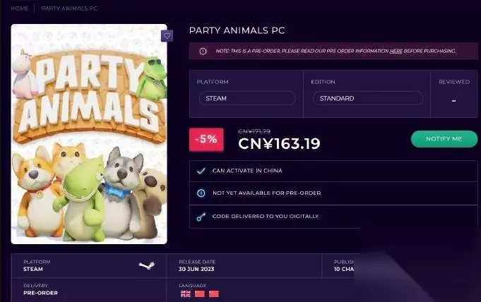 《动物派对》游戏售价介绍 上线时间:2023年6月30日 上线平台:Steam 游戏售价:163.19元(-5%折后价,原价171.79元)。