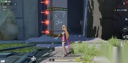 使用原能手炮阻拦激光,玩家要站在侧面朝着地上发射(发射位置要在红线上),然后就可以拿到宝箱了。
