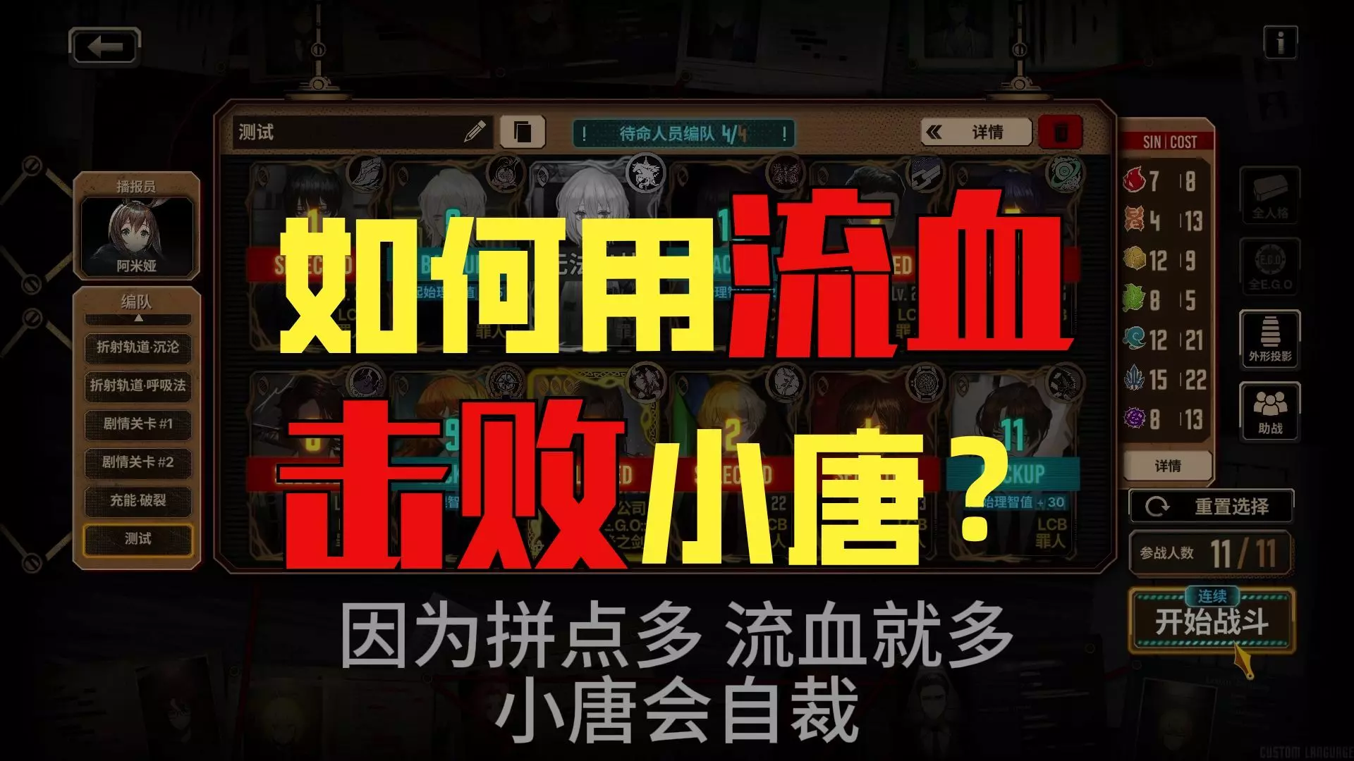 另外可以每场战斗开局就让初始罗佳或者你有其他增伤被动人格(例如 豆豆宝 w箱 死协小唐) 可以开局用他们拼点被打死获得资源以及被动() 如果有EGO可以帮助子路…