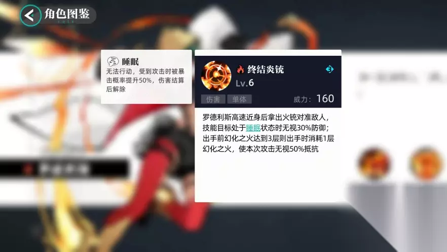 罗德利斯的一、二技能都能够为自己叠加幻化之火buff,一技能还有几率额外提高自身的攻击能力,二技能可以提高自己的暴击率,大招如果攻击了睡眠debuff的敌人,能够无视三成的防御能力,如果幻化之火达到了3层以上,还可以无视对方50%的抵抗,也就是一旦对方处于睡眠状态并且罗德利斯的幻化之火buff叠满,再肉的角色在罗得利斯面前都像纸片一样不堪一击。