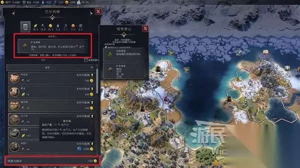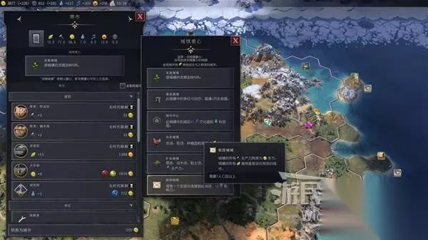 区域规划 当城市生产建筑与奇观时需要选择城市边界内的格子放置此类设施,而城市边界内的格子可大致分为两种地块:【市区地块】与【乡村地块】。 城市边界内没有放置建筑设施的地块均可被视为乡村地块,当选择某个地块放置了建筑时,此地块升级为市区地块。 这代取消了工人单位,所有建筑直接通过城市放置,每个地块可以放置两种建筑,当格子放满建筑时此格子会升级为城区。