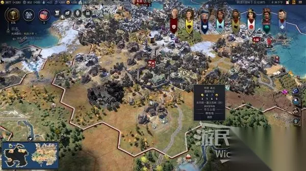 领袖、文明与时代 领袖与文明被视作两个独立的系统,玩家开局需要选定1位固定领袖(如孔子、拿破仑),其专属加成(如科举制、军事征服)将全程生效。 单局游戏将跨越三个历史阶段——【古典时代】→【探索时代】→【近世时代】 每个时代需选择对应新文明(如古典埃及→探索阿拔斯→近世美国),实现文明特质迭代。 文明需要变更三次,而领袖不可重选,也就是说你会见识到孔子一步步将罗马建设成美国。 这里有一个需要注意的点,当过渡到下一个时代并且选择新的文明时,大多数文明都需要玩家满足某个条件才能选择,从开发某种资源到进行多少次贸易等,因此玩家在时代的开局就要做好进入下一个时代前文明的选择与前期准备。