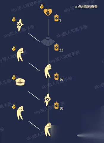 光遇点灯先祖复刻攻略 一、点灯先祖复刻兑换表 1、黑色褶皱斗篷,兑换需要22根黄蜡烛。 2、军官帽,兑换需要10根黄蜡烛。 3、伸腰动作,升级需要16根黄蜡烛。