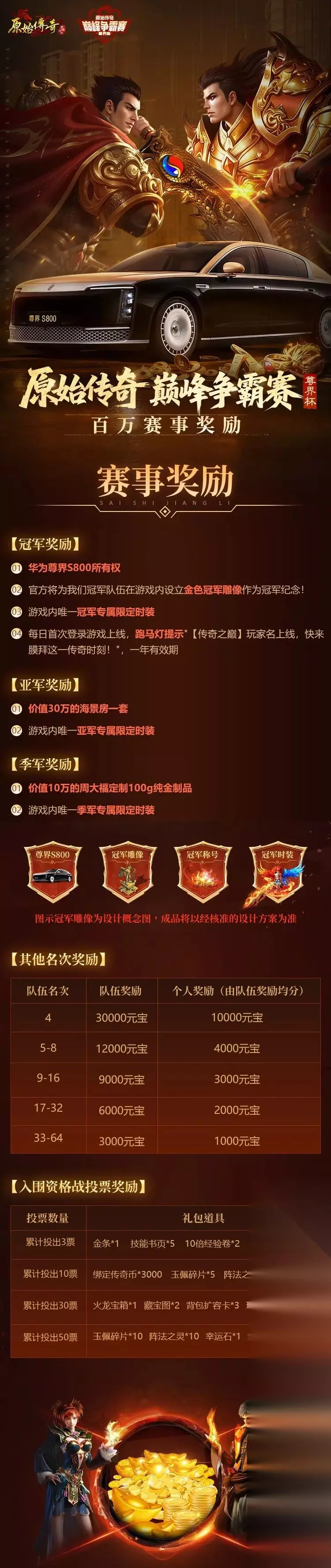 原始传奇「尊界杯」巅峰争霸赛正在火热报名中! 豪华奖励清单正式曝光!不止豪车与海景房!更多超值奖励等你轻松来赢!你的努力,永远物超所值!