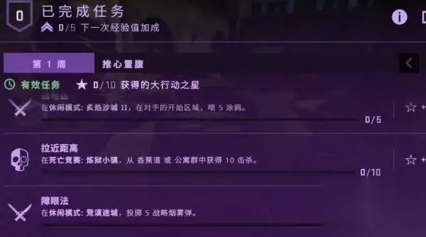 CSGO裂网大行动任务有哪些 固定的大行动币玩儿法,完成指定任务数量即可升级大行动币。完成33个任务会升级为银色,66个任务会升级成金色,所有100个任务完成会升级成钻石。 裂网大行动每周任务都会变。共计33个白银级任务、66个黄金级任务,或100个钻石级任务。 完成任务可获得大行动之星,每周可获取的大行动之星有上限。完成任务,你还可获得大行动挑战币进度以及经验值加成。任务会以“周”为单位公布。(首周10颗星,后面每周6颗)当你拥有足够多的大行动之星,将获得下一个奖励。 本次裂网大行动采用战斗通行证的方式,通过获得星星进行升级。星星可以通过任务获得,如果星星不够,可以通过商店进行购买。如果完成全部任务,可以获得100颗星星,因为第一周是10颗,以后每周是6颗。