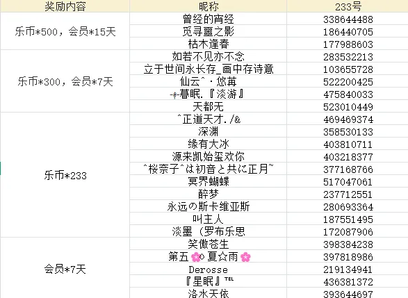 🎁随机抽取10位回答正确1个答案的玩家获得:233乐园会员*7天