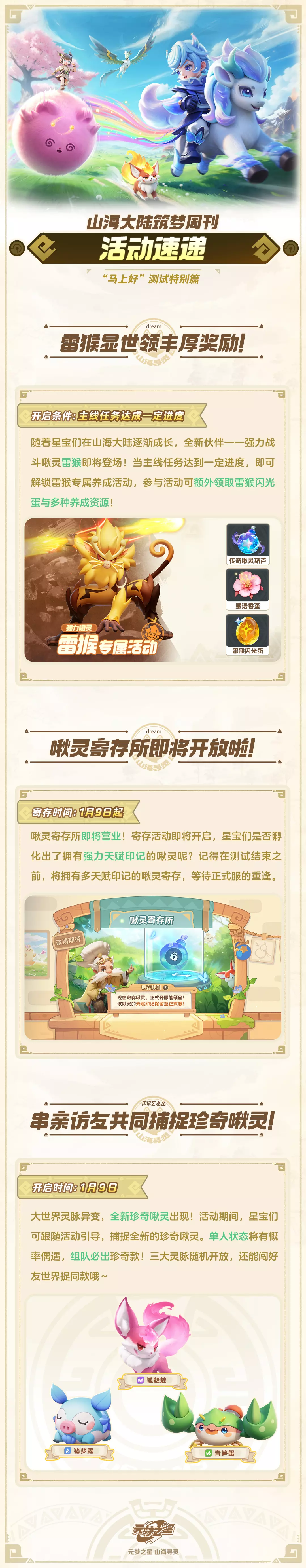 此次为非保密测试,未获得资格的星宝们,也可在测试期间搜索“山海寻灵:捉宠大世界”,了解山海大陆~